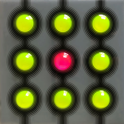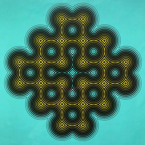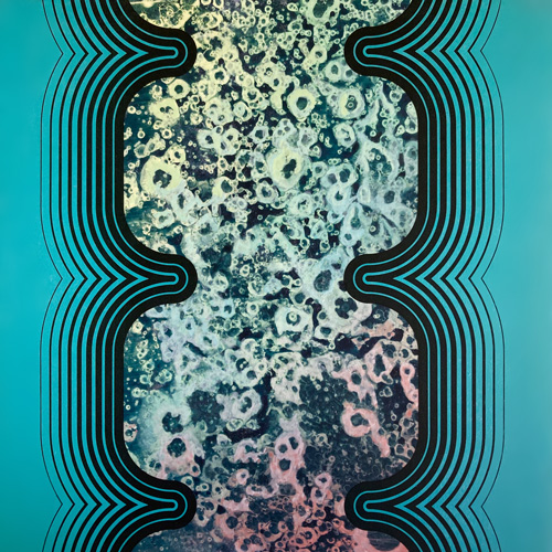 Symmetrical biomorphic shapes appeared in the work some years ago, and they reminded me of mouths or vibrating vocal cords, so I called them "words". Viewers have often said they remind them of an alien alphabet. I've since connected this to an artistic movement called "asemic writing", referring to abstract imagery that resembles written language but doesn't have any specific meaning.