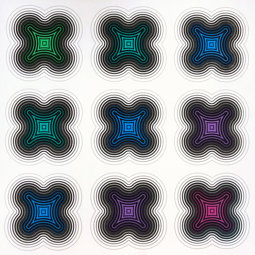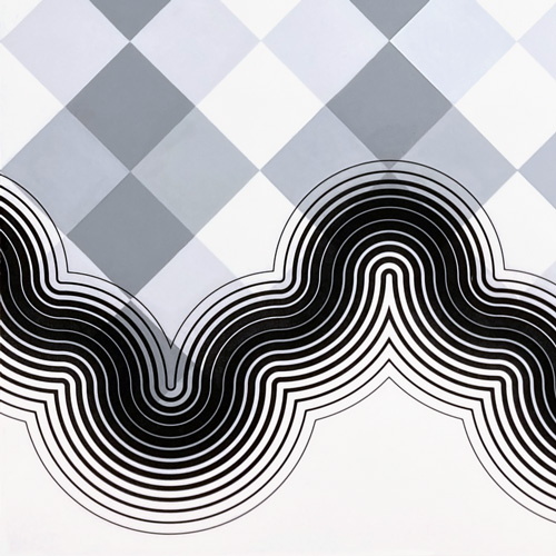 I'm passionate about digital design, but material craftsmanship is important to me, too. These pieces marry traditional painting with an interesting method of transferring a laser-printed paper image onto a wood panel using acrylic medium. The precise digital lines seem to hover over the materiality of the hand-painted background...distinct, but complementary. The graphic linearity gives the pieces a pop or op quality, but with geometric rigor.