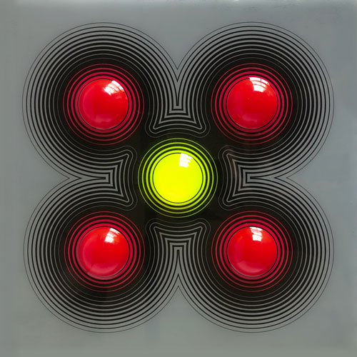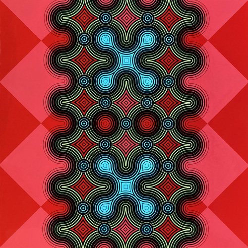 I'm passionate about digital design, but material craftsmanship is important to me, too. These pieces marry traditional painting with an interesting method of transferring a laser-printed paper image onto a wood panel using acrylic medium. The precise digital lines seem to hover over the materiality of the hand-painted background...distinct, but complementary. The graphic linearity gives the pieces a pop or op quality, but with geometric rigor.