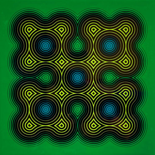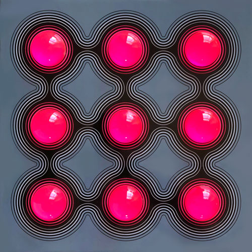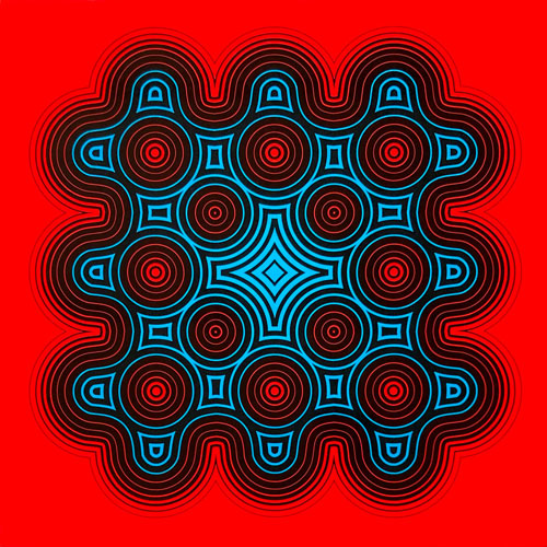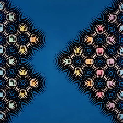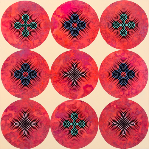 Symmetrical biomorphic shapes appeared in the work some years ago, and they reminded me of mouths or vibrating vocal cords, so I called them "words". Viewers have often said they remind them of an alien alphabet. I've since connected this to an artistic movement called "asemic writing", referring to abstract imagery that resembles written language but doesn't have any specific meaning.