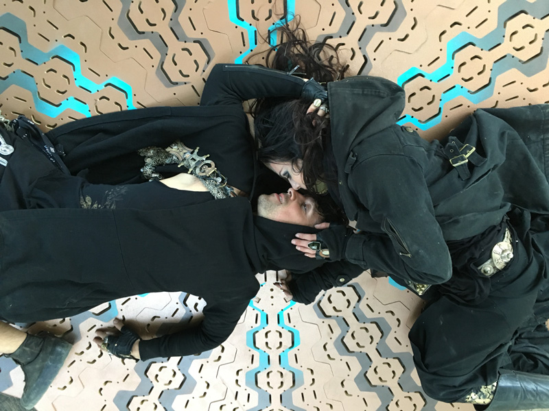CNC cut plywood, metallic enamel and acrylic, color-changing LEDs