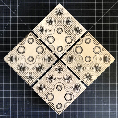 Because the panels are so small, they remind me of wooden blocks meant for toddlers, giving the work a tactile, whimsical quality. The whimsy is reinforced with the cartoon-like graphic quality of the imagery. The magnets make a fun, satisfying sound when they snap together. In the end, my experience of working with modularity has been a dialogue with connections, and also with play.